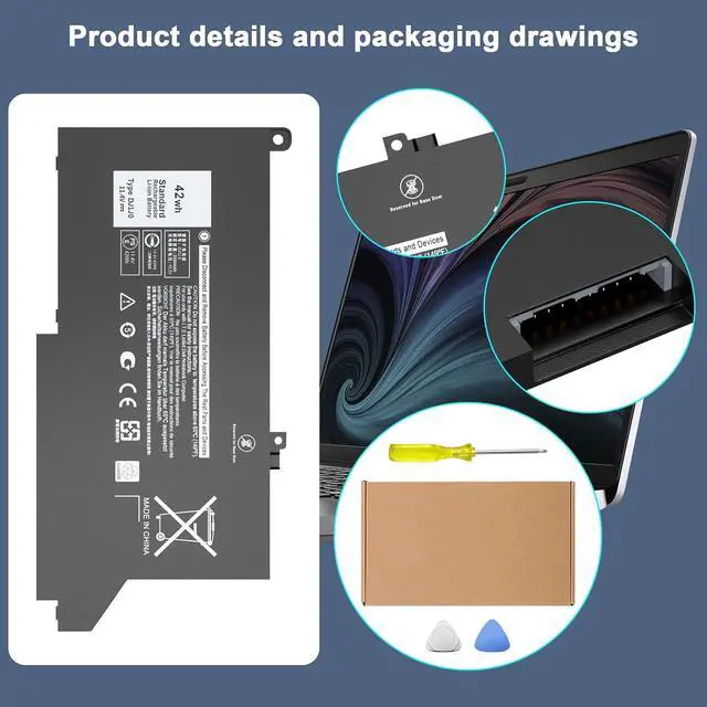 Packages includes: 1 x DJ1J0 Laptop Battery Replacement, 2 x Free Screwdrivers,1 x Instruction for DJ1J0 battery. 100% New from Manufacturer. Up to 500 recharge cycles over the life of the battery