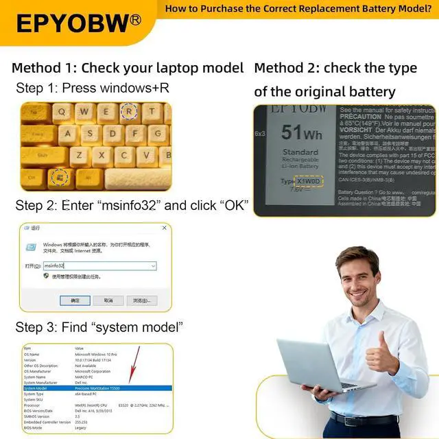 • Purchase SkillsPlease open the back cover of the laptop before ordering and make sure that the original battery model is consistent with the listing. After getting the battery, please install the battery correctly, make sure that the battery connector is firmly connected to the laptop motherboard, and use the original charger to charge the laptop.Discharge the new battery to 5% (not 0%), then charge and cycle 3-4 times to wake up the new battery.