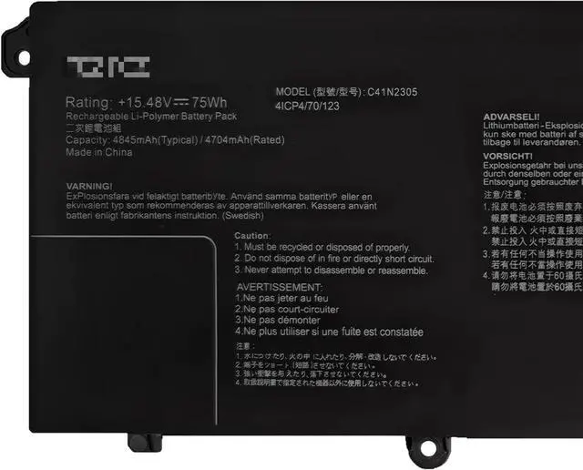 C41N2305 75Wh 4845mAh Compatible for ASUS Vivobook Pro 15 OLED N6506 N6506MJ N6506MU N6506MV N6506CU Series 0B200-04490000 15.48V 4-Cell