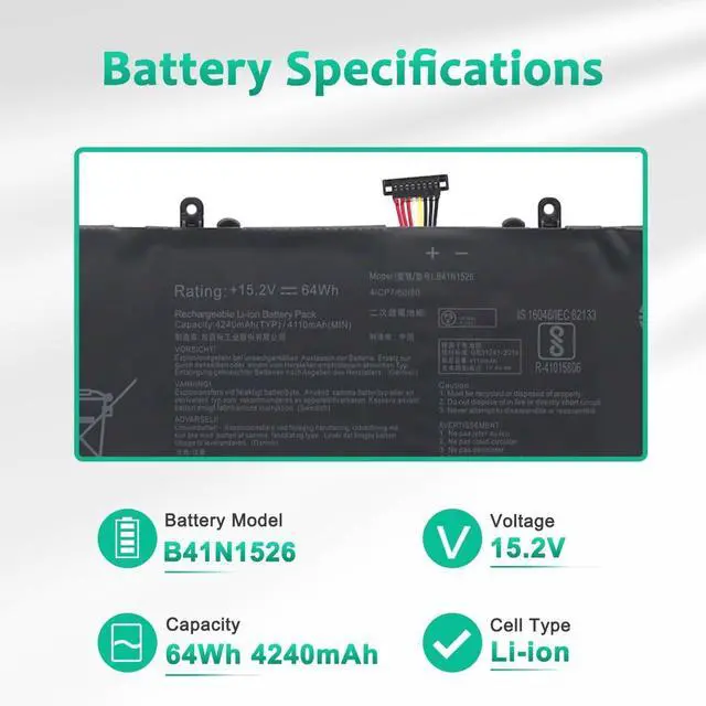 LONG-LASTING BATTERY LIFE:With 15.2V,capacity (64Wh/4240mAh),the(B41N1526) battery ensures all-day power for your laptops in a factory-fresh, never-used battery pack designed for maximum performance.