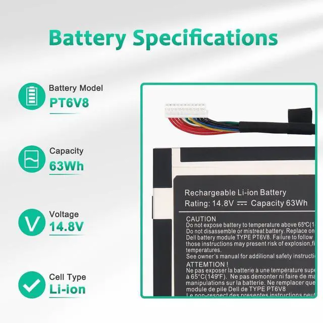 • LONG-LASTING BATTERY LIFE:With 14.8V,capacity (65Wh/4400mAh),the(PT6V8) battery ensures all-day power for your laptops in a factory-fresh, never-used battery pack designed for maximum performance.