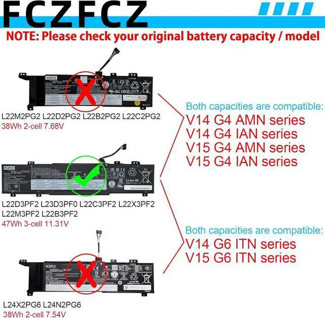 • SpecificationsBattery Model:L22D3PF2 // Voltage:11.31V // Capacity:47Wh 4156mAh 3-Cell // Color:Black // Condition:Brand New.