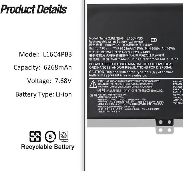 48Wh L16C4PB3 L16M4PB3 L16L4PB3 Batería para portátil Compatível com IdeaPad 720S-13ARR 720S-13IKB 720S-13IKBR 720S-13ARR-81BR 720S-13IKB-81A8 81BV 5B10N00766 5B10N00765 5B10N03289 13''
