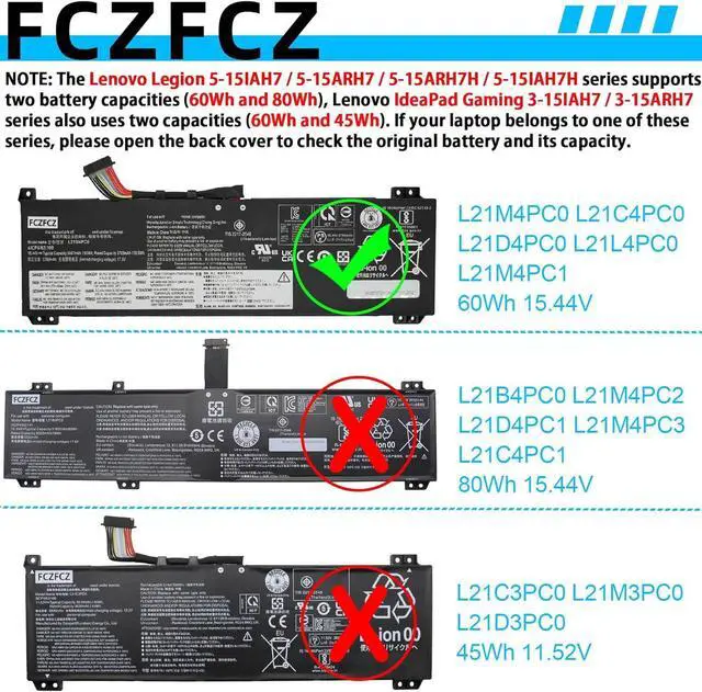 Compatible with Machine Modelsfor Lenovo Legion 5-15IAH7 (Type: 82RC) series; for Lenovo Legion 5-15ARH7 (Type: 82RE) series; for Lenovo Legion 5-15ARH7H (Type: 82RD) series; for Lenovo Legion 5-15IAH7H (Type: 82TB, 82RB) series; for Lenovo Legion 5-15ARP8 (Type: 83EF) series; for Lenovo Legion 5-15APH9 (Type: 83EG) series; for Lenovo Legion 5-15IRX9 (Type: 83JJ) series; for Lenovo IdeaPad Gaming 3-15IAH7 (Type: 82S9, 82UJ) series; for Lenovo IdeaPad Gaming 3-15ARH7 (Type: 82SB, 82UK) series.