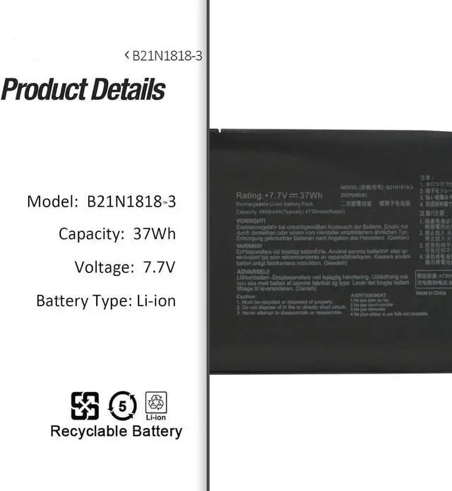 7.7V 37Wh/2-Cell C21N1818 C21N1818-3 Batería de Repuesto para computadora portátil Compatible for Asus VivoBook 14 D409 D409B D409BA D409D D409DA D409DJ D409DL Series