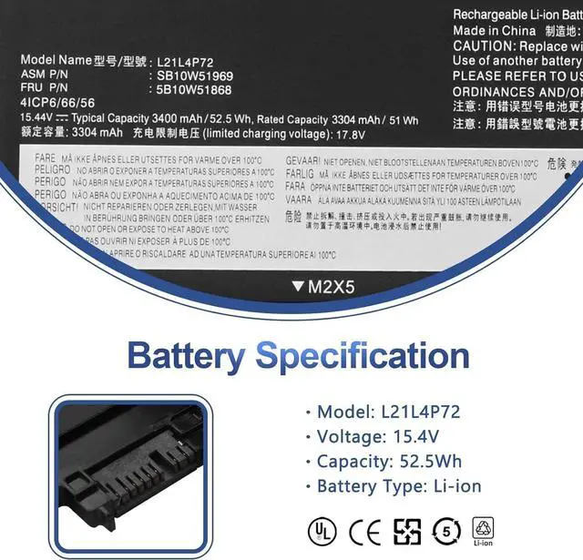 15.48V 52.5Wh/3392mAh 4-cell L21M4P72 Laptop Battery Compatible for Lenovo ThinkPad T14 P14s Gen 3 ThinkPad T14 P14s Gen 4 Series 5B10W51865 L21L4P71 L21M4P71 L21C4P71 L21D4P71 L21M3P71 L21L3P71