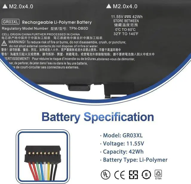 11.55V 42Wh GR03XL GR03042XL TPN-DB0D M12328-2C1 M12451-005 M12328-2C2 M12328-2D1 Laptop Battery Compatible for HP ProBook 635 Aero G7 G8 Series