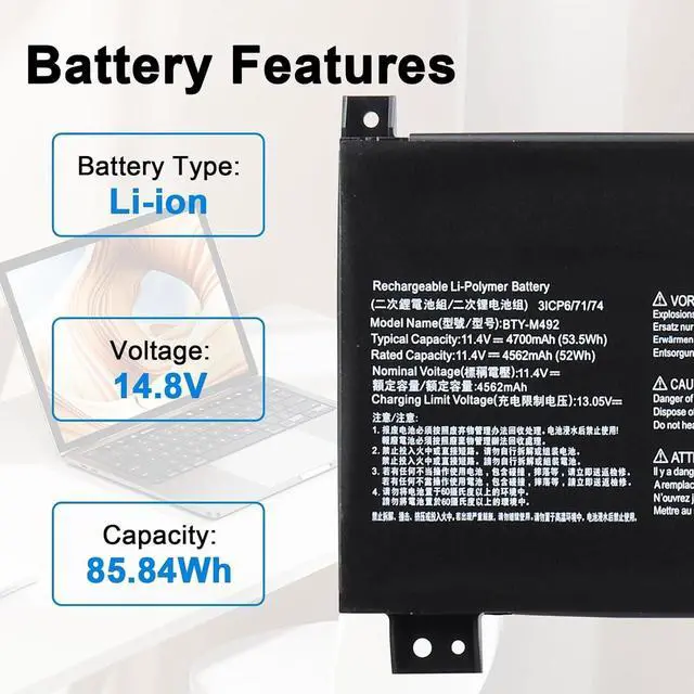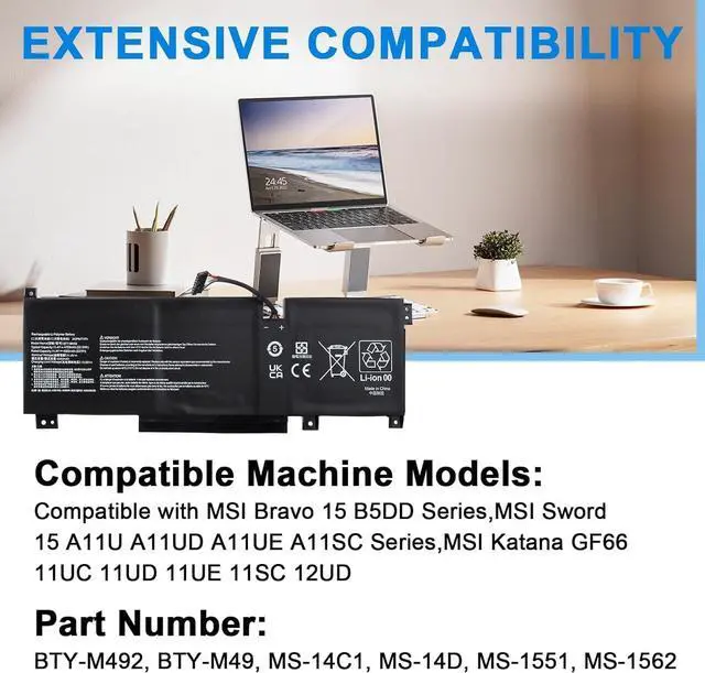 BTY-M492 Laptop Battery Compatible for MSI Bravo 15 B5DD Sword 15 A11UD A11UE A11SC Katana WF66 WF76 GF66 GF76 11UC 11UD 11UE 11SC 12UD 12UE 12UG 12UGS 12UX 11UI 11UI 11UJ Crosshair 15 17 A11UCK