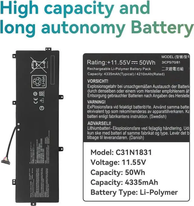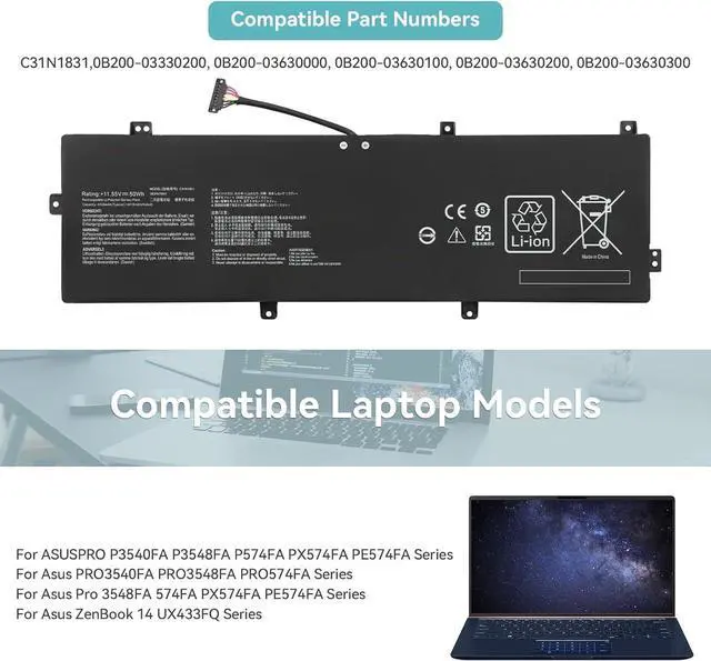 50Wh C31N1831 Compatible for ASUSPRO P3540FA P3548FA P574FA PX574FA PE574FA Asus Pro 3548FA 574FA PRO3548FA PRO574FA PRO3540FA 14 UX433FQ UX433FQ-A5032R