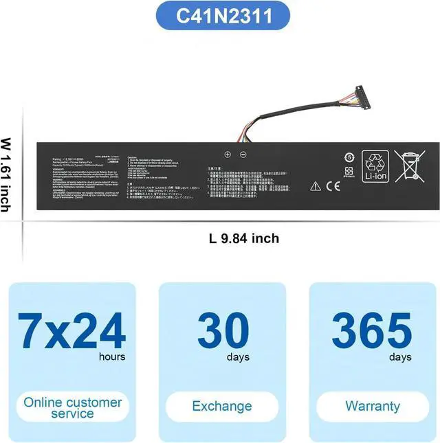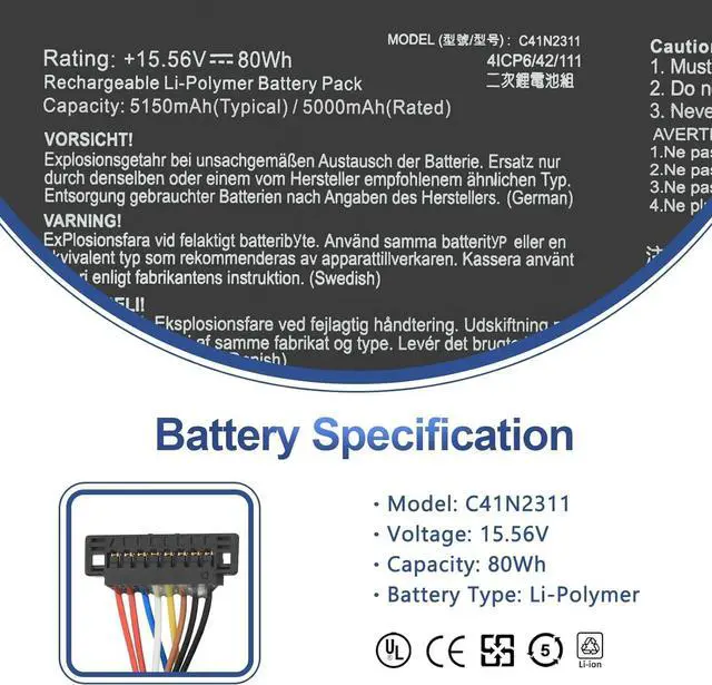 15.56V 80Wh C41N2311 4ICP6/42/111 Compatible with ASUS ROG Ally X RC72LA Handheld Gaming Computer Series 15.56V 5150mAh