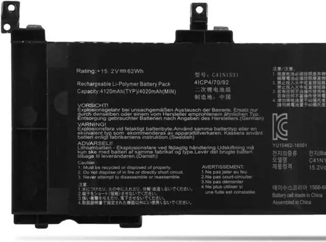 15.2V 62Wh C41N1531 Compatible for Asus ROG Strix GL502VY GL502VY-1A GL502VY-DS71 DS74 GL502VS GL502VS-1A GL502VS-1E GL502VS-DB71 GL502VS-FY032T GL502VY-FY023T 0B200-01940100