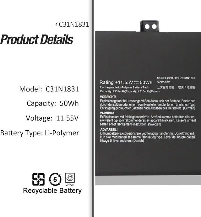 11.55V 50Wh C31N1831 Compatible for ASUS PRO P3540FA P3548FA P574FA PX574FA PE574FA Asus Pro 3548FA 574FA PRO3548FA PRO574FA PRO3540FA ZenBook 14 UX433FQ UX433FQ-A5032R UX433FQ-