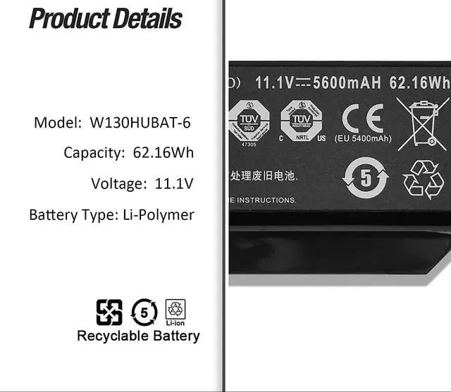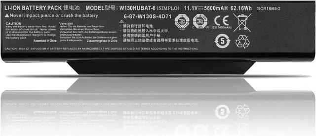 11.1V 62.16 Wh/5600 mAh W130HUBAT-6 Batería de Repuesto para computadora portátil Compatible for Clevo W130EV W130EW W130EX W130HU W130HV W130HX W255CEW