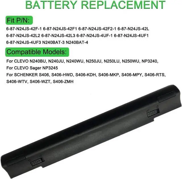 14.8V 44Wh N240BAT-4 N240BAT-3 Batería de Repuesto para computadora portátil Compatible for Clevo N240BU N240JU N250LU NP3240 NP3245 6-87-N24JS-4UF-1