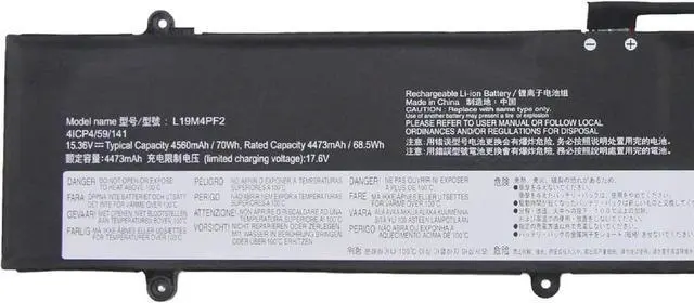 11.36V 70Wh 4560mAh L19M4PF2 5B10X18187 L19C4PF2 5B10X18188 Batería de Repuesto para computadora portátil Compatible for Lenovo Ideapad Slim 7-15IMH05 Series