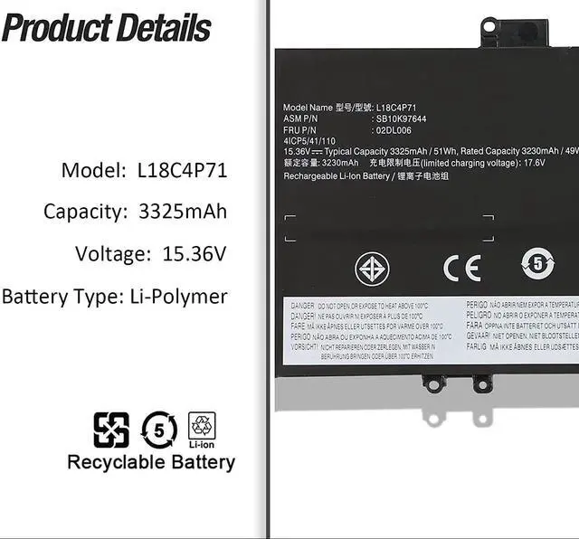 51Wh L18L4P71 Compatible for Lenovo ThinkPad X1 Yoga 4th 5th 2019 2020 Gen Series Carbon 7th 8th 2019 2020 Gen Series 02DL004 02DL005 L18M4P72 02DL006 L18C4P71 5B10W13930 5B10W13931