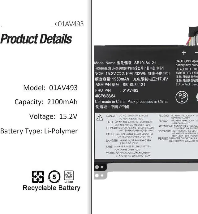 Compatible for Lenovo 01AV493 00UR890 00UR891 00UR892 SB10L84121 SB10L84122 SB10L84123