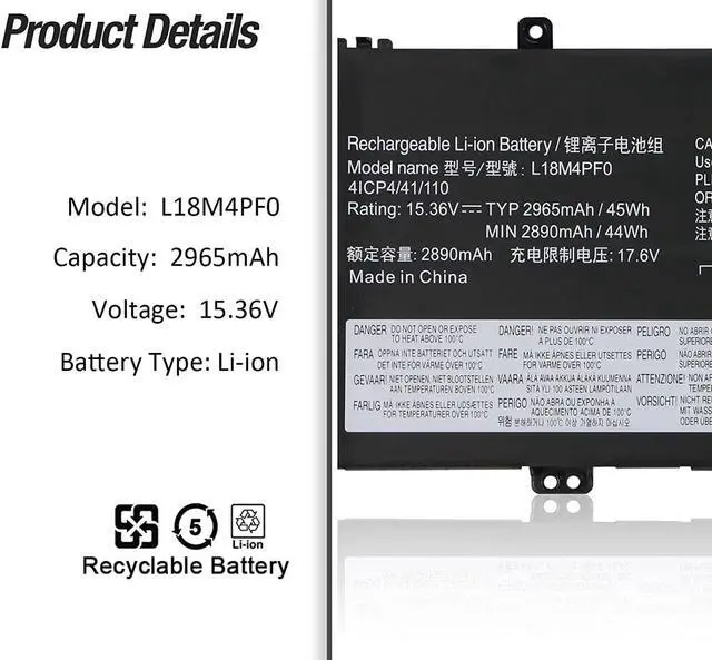 15.36V 45Wh/2965mAh L18M4PF0 L18C4PF0 Batería de Repuesto para computadora portátil Compatible for Lenovo ThinkBook 13S-IML 13S-IWL 20RR 20R9 20RS 20RM Thinkbook Plus 13Gen 1 13.3" Series