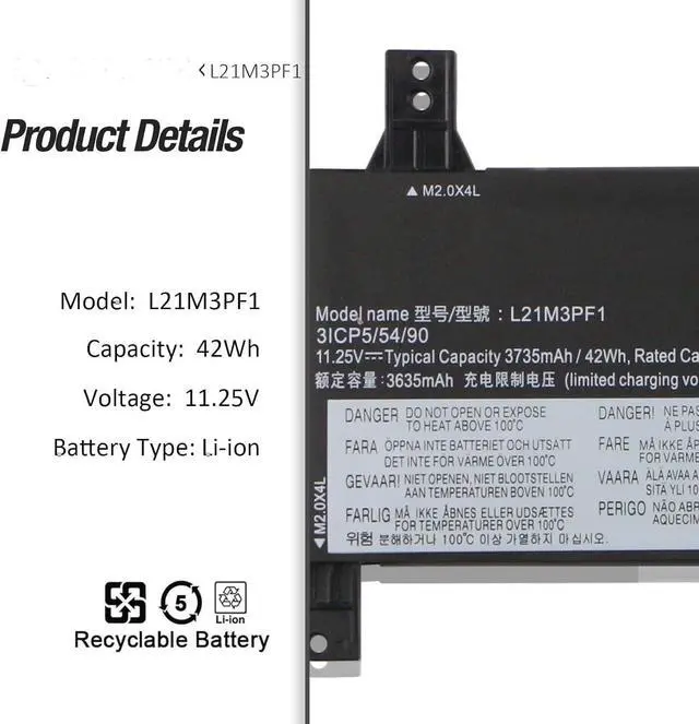11.25V 42Wh/3735mAh L21M3PF0 L21D3PF0 Batería de Repuesto para computadora portátil Compatible for Lenovo IdeaPad 1-14ALC7 1-14IAU7 1-14IGL7 1-14IJL7 1-14ADA7 1-14AMN7 1-15IGL7 1-15IAU7 Series