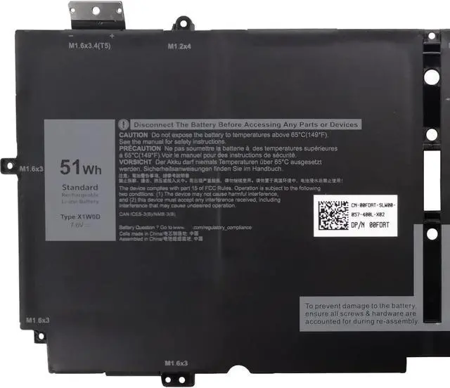 7.6V 51Wh 6375mAh X1W0D 52TWH XX3T7 0XX3T7 00FDRT Batería de Repuesto para computadora portátil Compatible for Dell XPS 13 7390 2-in-1 / XPS 13 9310 2-in-1 P103G P103G001 P103G002 Series