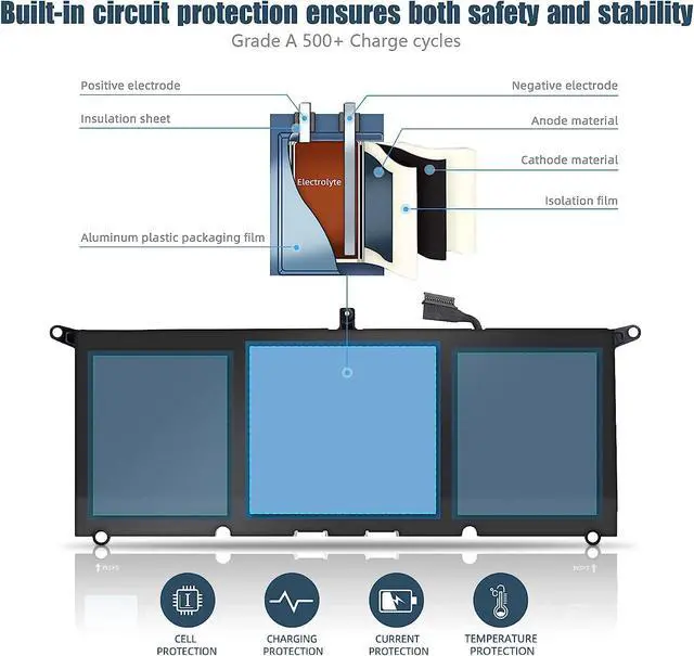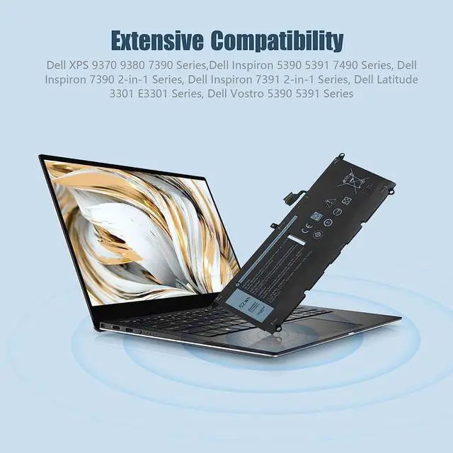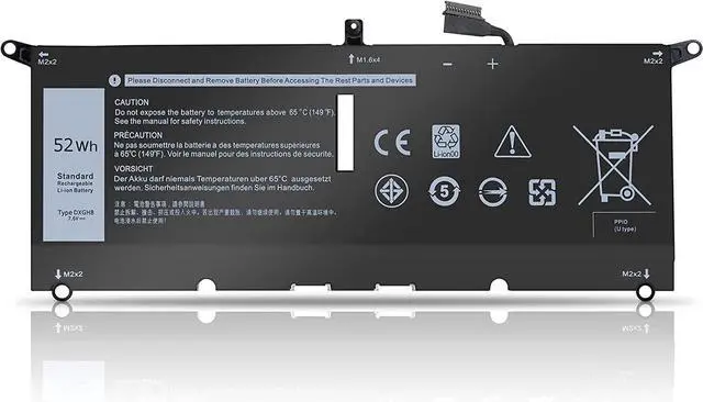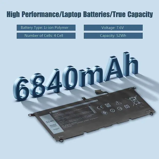 7.6V 52Wh 6840mAh 4 Cells DXGH8 G8VCF H745V 451-BCRE Batería de Repuesto para computadora portátil Compatible for Dell XPS 13 7390 9370 9380, Inspiron 7391 2-In-1 Primary