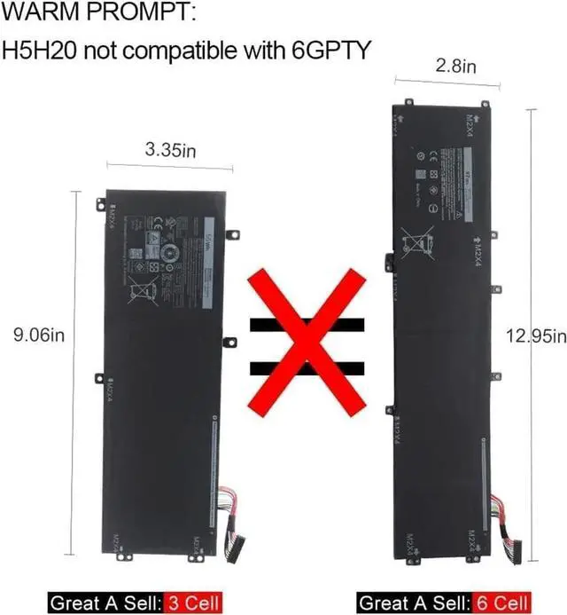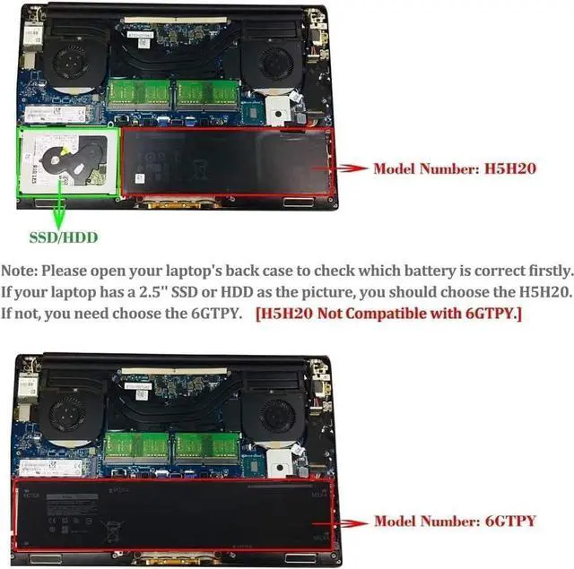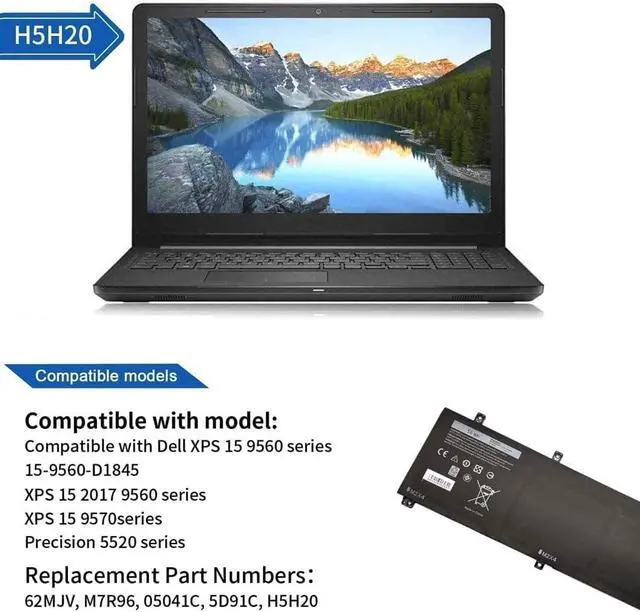 11.4V 56WH H5H20 62MJV 6GPTY M7R96 05041C 5D91C Batería de Repuesto para computadora portátil Compatible for Dell XPS 15 9560 9550 9570 7590 7591 15-9560-D1845 Precision 5540 5530 5520 5510 Series