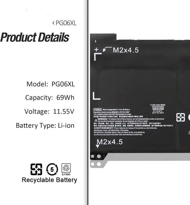 11.55V 69W PG06XL HSTNN-DB9F Batería de Repuesto para computadora portátil Compatible for HP Omen 15-dh 15-dh0000 15t-dh000 15t-dh100 15-dh0001ns 15-dh0002ns 15-dh0002nl 15-dh0003na Series