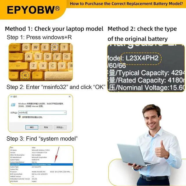 Purchase SkillsPlease open the back cover of the laptop before ordering and make sure that the original battery model is consistent with the listing. After getting the battery, please install the battery correctly, make sure that the battery connector is firmly connected to the laptop motherboard, and use the original charger to charge the laptop.Discharge the new battery to 5% (not 0%), then charge and cycle 3-4 times to wake up the new battery.