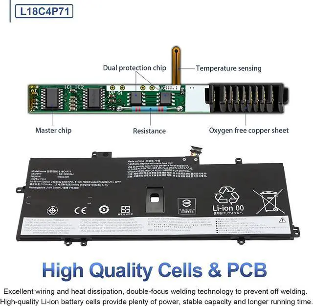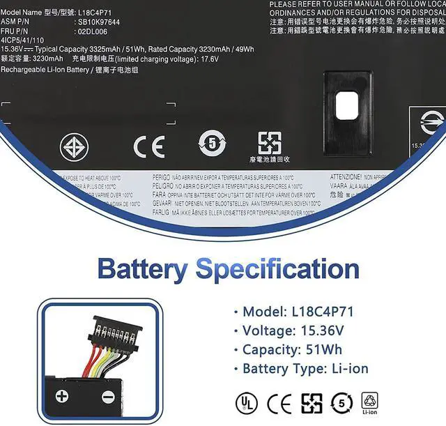 81L18C4P71 02DL006 15.36V 51Wh 3325mAh Compatible for Lenovo ThinkPad X1 Yoga 4th 5th Gen, ThinkPad X1 Carbon 7th 8th Gen Series SB10K97644 02DL004 L18L4P71 SB10K97642 02DL005