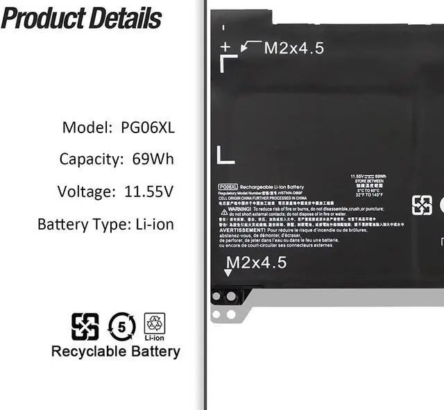 11.55V 69Wh PG06XL HSTNN-DB9F Batería de Repuesto para computadora portátil Compatible for HP Omen 15-dh 15-dh0000 15t-dh000 15t-dh100 15-dh0001ns 15-dh0002ns 15-dh0002nl 15-dh0003na Series