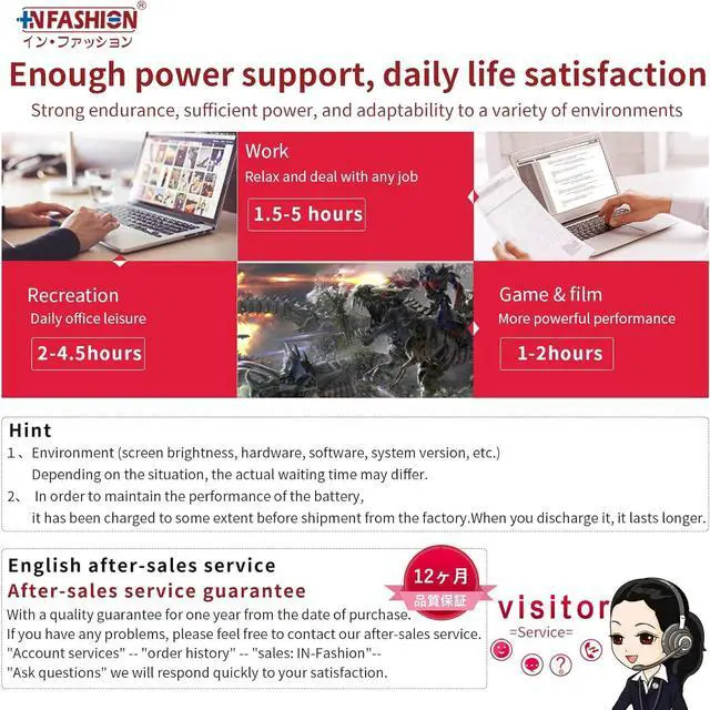• Superior serverice :We are so confident in the performance of our replacement laptop batteries.