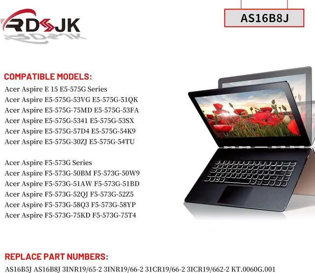 Compatible Models: Acer Aspire E5-575G E5-575G-30ZJ E5-575G-51QK E5-575G-53FA E5-575G-53SX E5-575G-54K9 E5-575G-54TU E5-575G-54Y1 E5-575G-55Z3 E5-575G-56S0 E5-575G-57D4 E5-575G-57YQ E5-575G-59A2 E5-575G-74CQ E5-575G-79TG E5-575G-530T E5-575G-546S E5-575G-598W E5-575G-599Y E5-575G-728J E5-575G-5393 E5-575G-5576 E5-575G-51CZ E5-575G-54G7 E5-575G-57D4 E5-575G-59EE E5-575G-527J E5-575G-5393 E5-575G-5762 F5-573G F5-573G-50BM F5-573G-50W9 F5-573G-51AW F5-573G-51BD F5-573G-51LQ F5-573G-51T3 F5-573G-52ET F5-573G-52M7 F5-573G-52PJ F5-573G-52Q8