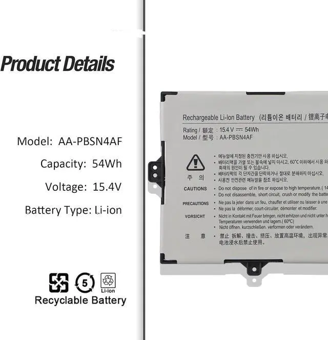 15.4V 54Wh AA-PBSN4AF Compatible for Samsung Galaxy Book (2021) NP750XDA NP750TDA 9 Pen 13.3 NP930SBE NT930SBE Flex Alpha 2-in-1 NP730QCJ Galaxy Book Flex2 Alpha NP730QDA