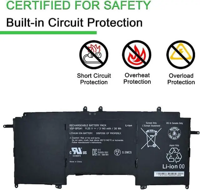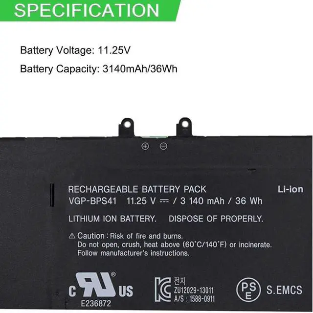 11.25V 36Wh 3140mAh VGP-BPS41 BPS41 Compatible for Sony Vaio Flip 13 SVF13N SVF13N13CXB SVF13N18SCB SVF13N17SCB SVF13NA1PT