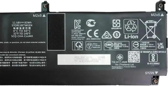 11.58V 83Wh MB06XL HSTNN-IB9E L77973-1C1 L78553-005 Batería de Repuesto para computadora portátil Compatible for HP Studio G7 1J3R6EA 1J3R7E 2J3H8PA 21X54UT ZBook Create RTX2070MQ Series