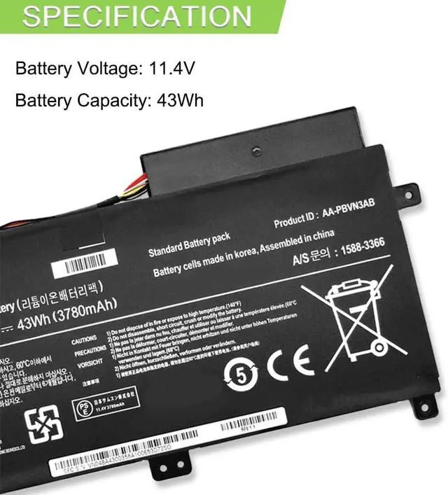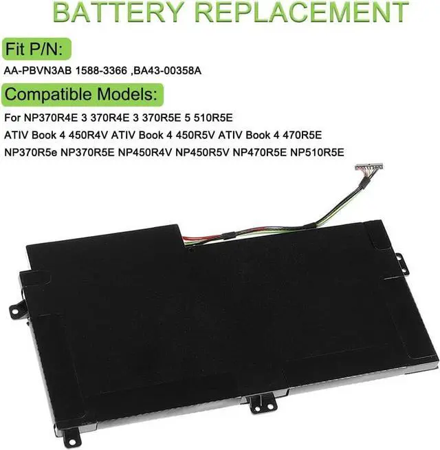 11.4V 43Wh AA-PBVN3AB AA-PBVN2AB l Compatible for Samsung BA43-00358A 1588-3366 NP370R4E NP370R5E NP470R5E NP450R5E NP450R4V NP370R5V NP450R5V NP450R4E NP450R5G NP510R5E