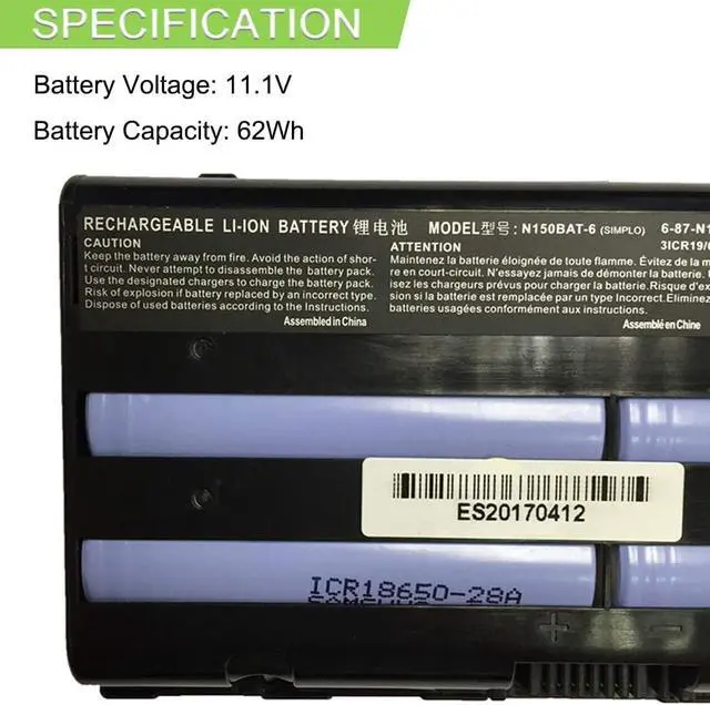 N150BAT-6 Compatible for Clevo N150 N150SD N155SD N170SD N170RF1-G Sager NP7155 NP7170 MVGOS F5 F5-150a Hasee Z6 Z6-SL7D1 11.1V 62Wh