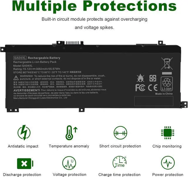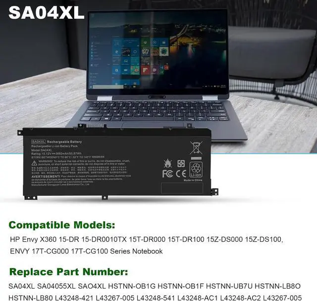 Compatible with Part NumbersSA04XL SAO4XL SA04055XL HSTNN-OB1G HSTNN-OB1F HSTNN-UB7U HSTNN-LB8O HSTNN-LB80 L43248-421 L43267-005 L43248-541 L43248-AC1 L43248-AC2