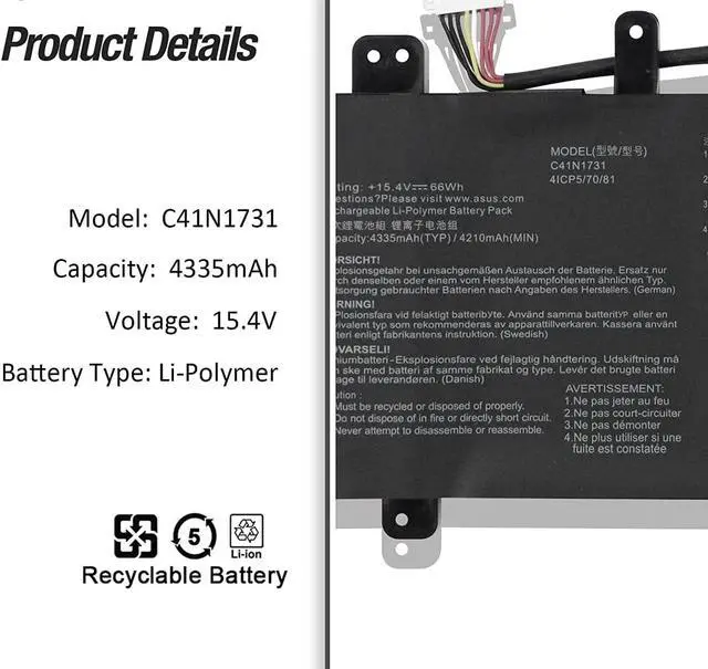 15.4V 66Wh/4335mAh C41N1731-2 Batería de Repuesto para computadora portátil Compatible for Asus ROG Strix G15 G512 G512LV G512LU G512LW G512LWS SCAR 15 G532LV G532LW G532LWS G17 G712LU Series