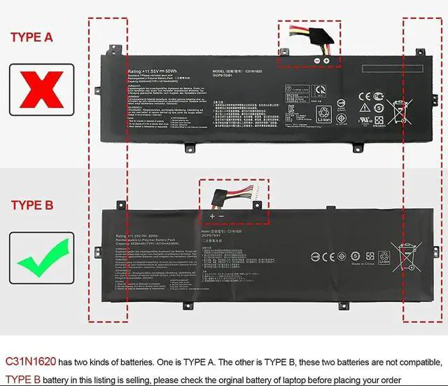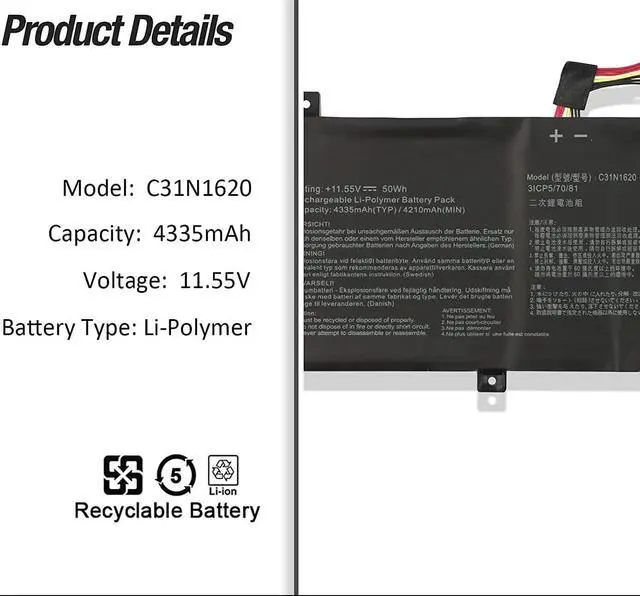 11.55V 50Wh C31N1620 Batería de Repuesto para computadora portátil Compatible for Asus UX430 UX430U UX430UA UX430UAR UX430UN UX430UNR UX430UQ U4100 U4100U U4100UN Series
