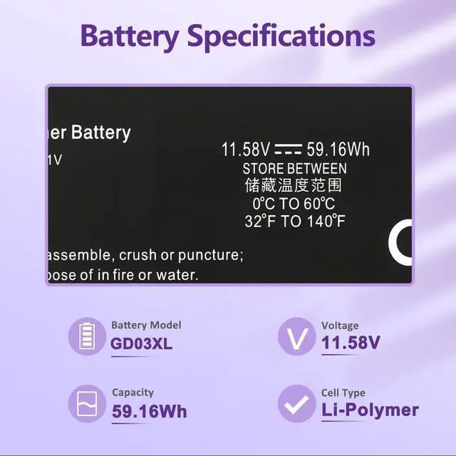 Fits Models:GD03XL GD03059XL HSTNNN-AB1E HSTNNN-OB3K HSTNN-AB1ETPN-DB1V TPN-IB0ZN66215-005 N66000-1E1 N66000-2C1 N66000-AC1 N66000-B71 N66000-1E1 N66000-2C1 N66000-AC1
