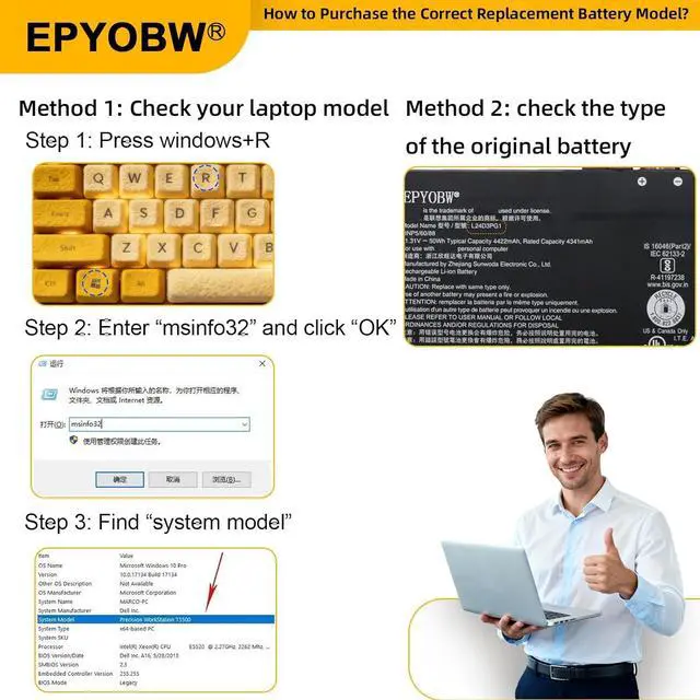 Purchase Skills Please open the back cover of the laptop before ordering and make sure that the original battery model is consistent with the listing. After getting the battery, please install the battery correctly, make sure that the battery connector is firmly connected to the laptop motherboard, and use the original charger to charge the laptop.Discharge the new battery to 5% (not 0%), then charge and cycle 3-4 times to wake up the new battery.