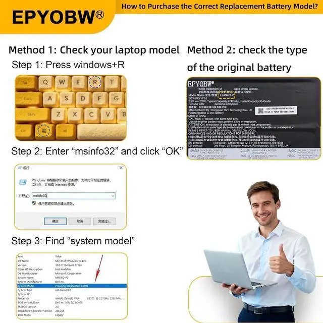 Purchase Skills Please open the back cover of the laptop before ordering and make sure that the original battery model is consistent with the listing. After getting the battery, please install the battery correctly, make sure that the battery connector is firmly connected to the laptop motherboard, and use the original charger to charge the laptop.Discharge the new battery to 5% (not 0%), then charge and cycle 3-4 times to wake up the new battery.