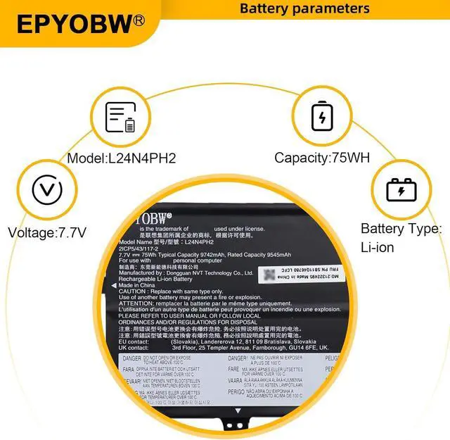 Specifications Battery Model: L24N4PH2 / Voltage: 7.7V / Capacity: 75Wh 9742mAh 4-cell / Color: Black / Condition: Brand New.