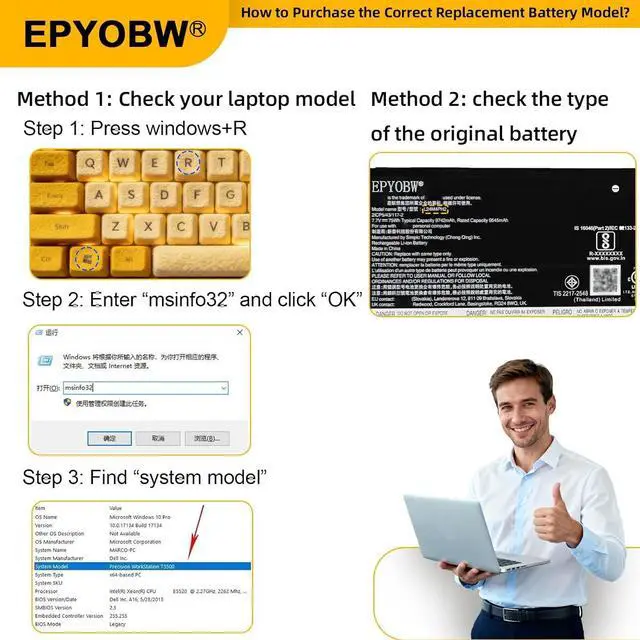 Purchase Skills Please open the back cover of the laptop before ordering and make sure that the original battery model is consistent with the listing. After getting the battery, please install the battery correctly, make sure that the battery connector is firmly connected to the laptop motherboard, and use the original charger to charge the laptop.Discharge the new battery to 5% (not 0%), then charge and cycle 3-4 times to wake up the new battery.