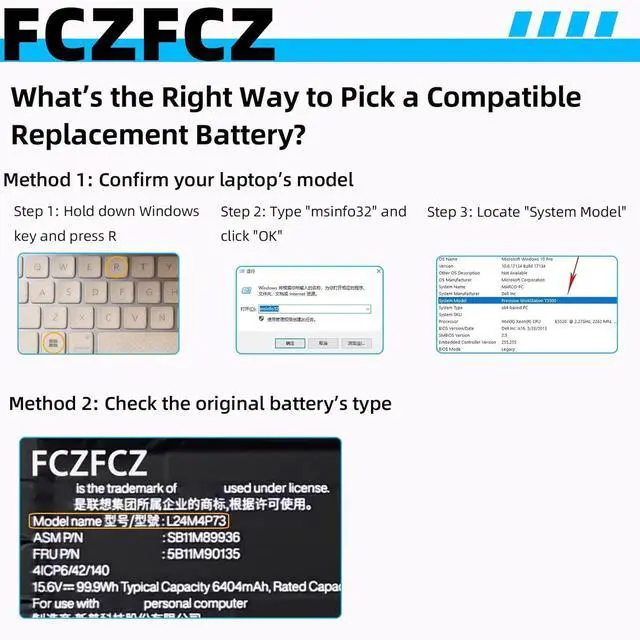 InstructionsPlease open the back cover of the laptop before purchasing and confirm that the original battery type is the same as the picture. Please read the battery instruction manual carefully before installing the battery. Please install the battery correctly and ensure that the battery interface and the motherboard are firmly connected. Please use the original charger to charge the laptop. After battery installation, discharge the new battery to 5% (not 0%), then charge and cycle 3-4 times to wake up the new battery.