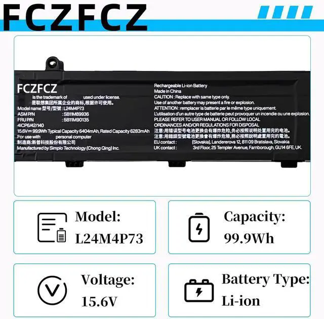 SpecificationsBattery Model:L24M4P73 // Voltage:15.6V // Capacity:99.9Wh 6404mAh 4-cell // Color:Black // Condition:Brand New.