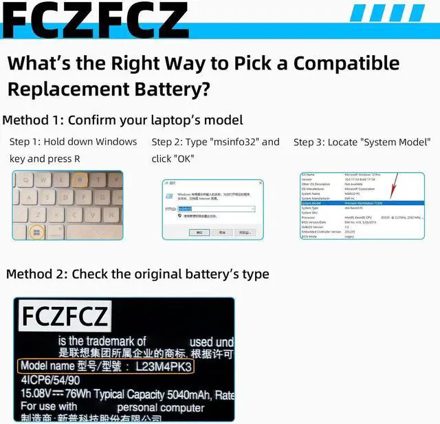 InstructionsPlease open the back cover of the laptop before purchasing and confirm that the original battery type is the same as the picture. Please read the battery instruction manual carefully before installing the battery. Please install the battery correctly and ensure that the battery interface and the motherboard are firmly connected. Please use the original charger to charge the laptop. After battery installation, discharge the new battery to 5% (not 0%), then charge and cycle 3-4 times to wake up the new battery.
