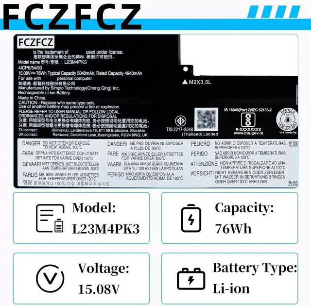 SpecificationsBattery Model: L23M4PK3 // Voltage:15.08V // Capacity:76Wh 5040mAh 4-cell // Color:Black // Condition:Brand New.