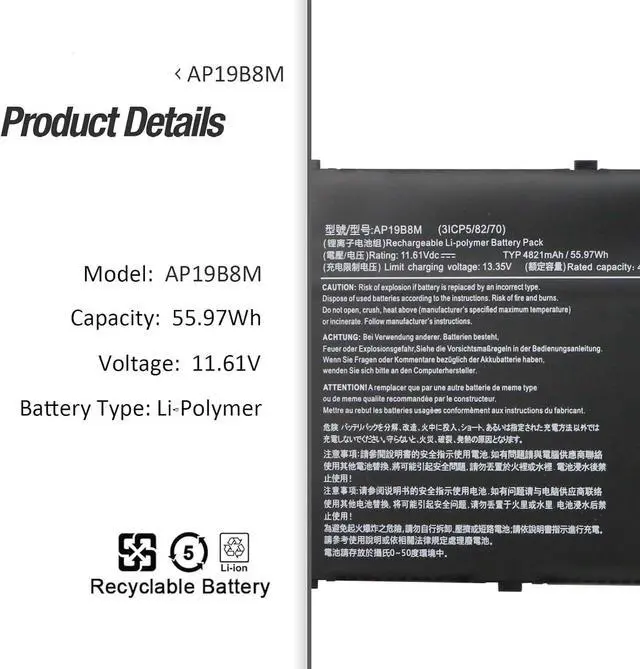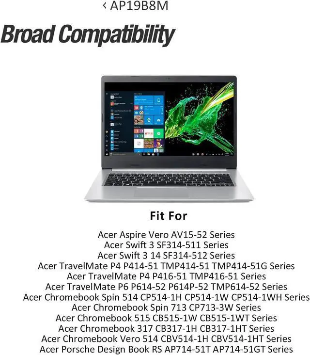 AP19B8M 11.61V55.97Wh/4821mAh Compatible for Acer Chromebook Spin 514 CP514-1H CP514-1W CP514-1WH 713 CP713-3W 515 CB515-1W CB515-1WT 317 CB317-1H CB317-1HT Vero 514